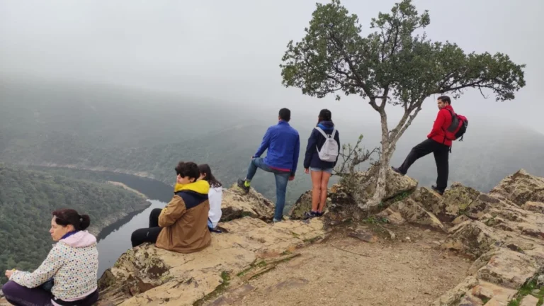 Tanto si te interesa la geología como si solo quieres disfrutar de la naturaleza de esta parte de la Reserva, esta ruta senderista de 9 kilómetros te va a interesar. Guiados por técnicos del Centro de Interpretación Geología de Monfragüe y una guía del SIA (Sendero Internacional Apalachense), caminaremos por los senderos entre Higuera de Albalat, Romangordo y Casas de Miravete, tres de los pueblos pertenecientes a la ruta apalachense. Un autobús nos llevará de Casas de Miravete a Higuera de Albalat, donde comenzará la ruta. Durante el camino iremos parando para observar el característico relieve apalachense de este territorio y nos explicarán el relieve, las formaciones rocosas y los accidentes geográficos más característicos. La ruta finaliza con una comida típica de la zona para reponer fuerzas en la que podrán participar todos los asistentes.
